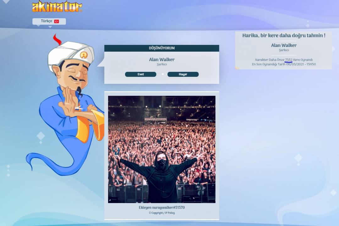 Akinatör Oyna Oyun Kolu.